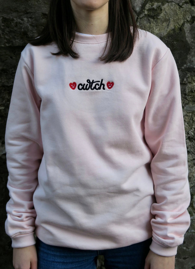 Our Unisex Embroidered 'Cwtch' Sweatshirt in Light Pink.